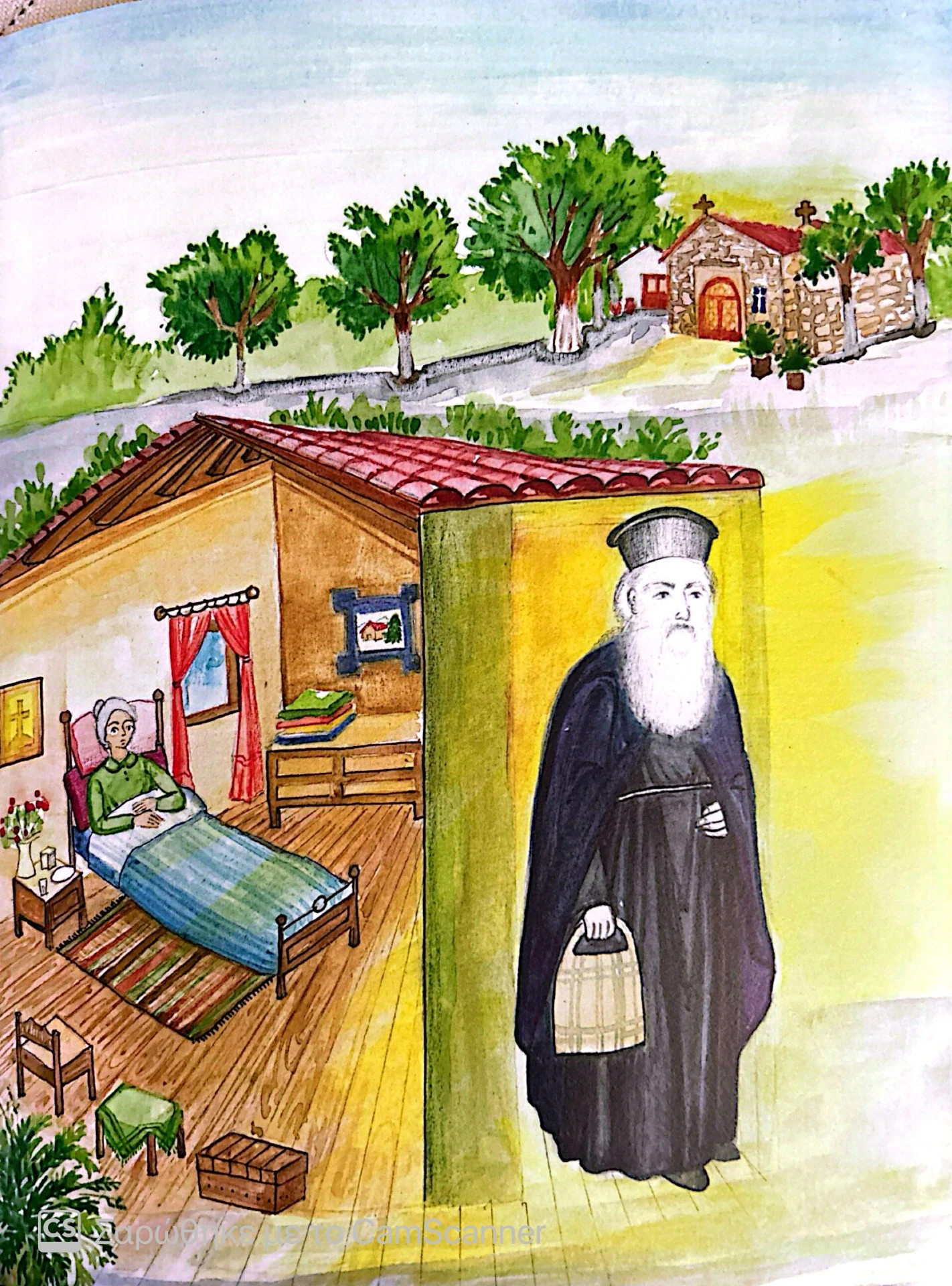 Μια μέρα πήγαν στο σπίτι της, όπως συνήθιζαν, κάποιες πιστές γυναίκες, για να της κρατήσουν συντροφιά. Η παράλυτη, ξαπλωμένη στο κρεβάτι της, μην μπορώντας να σηκωθεί, τις υποδέχθηκε με χαρά κάνοντας ένα νεύμα με το χέρι της να περάσουν και να καθίσουν κοντά της. Εκείνες, γελαστές, προχώρησαν και μπαίνοντας στο δωμάτιο θαύμασαν την καθαριότητα. Όλα έλαμπαν. Μα και τα ρούχα τής παράλυτης ήταν καθαρά και περιποιημένα. Λίγο πιο πέρα, ακουμπισμένα άλλα ρούχα, απαραίτητα για κείνη, φρεσκοπλυμένα και φρεσκοσιδερωμένα.